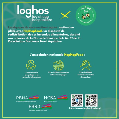En février, Loghos s’associe à l’initiative solidaire HopHopFood dans les établissements de la Polyclinique Bordeaux Nord Aquitaine et de la Nouvelle Clinique Bel-Air. Ces deux établissements rejoignent ainsi la Polyclinique Bordeaux Rive Droite où le dispositif est déployé depuis 2022 grâce à l’impulsion de Sandra Aublanc, diététicienne de l’établissement, et a déjà permis de sauver 1 211 paniers. Depuis quelques semaines, les invendus du self de Loghos sont également intégrés au dispositif.
